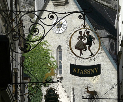 С течением времени на вывесках стали появляться универсальные символы: у кузнецов – молот или подкова, у слесарей – ключ, у торговцев вином – бочка, а у ростовщиков – три шара. В этот период вывески изготовлялись преимущественно из металла и при помощи кронштейнов крепились на фасады домов. Четкая и объемная форма вывески обеспечивала хорошую видимость, что было особенно важно на узких и длинных улочках западноевропейских городов.