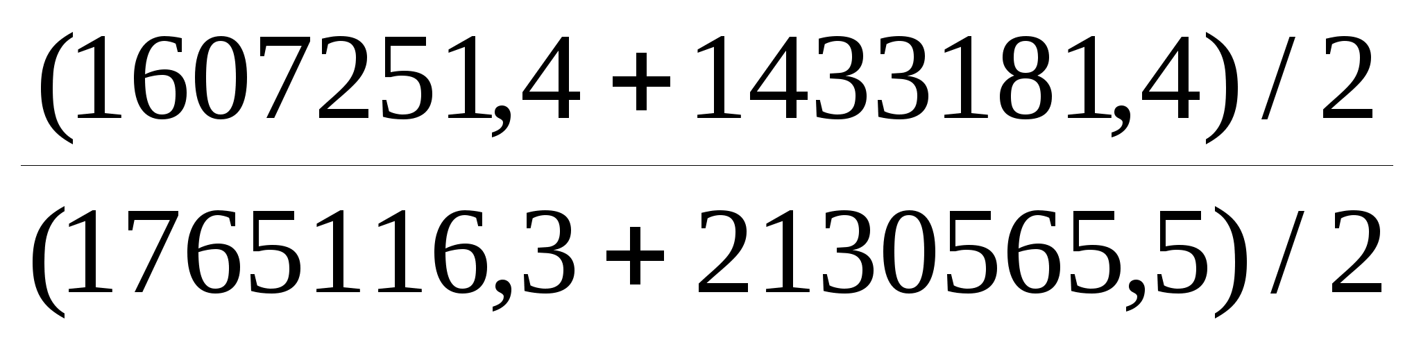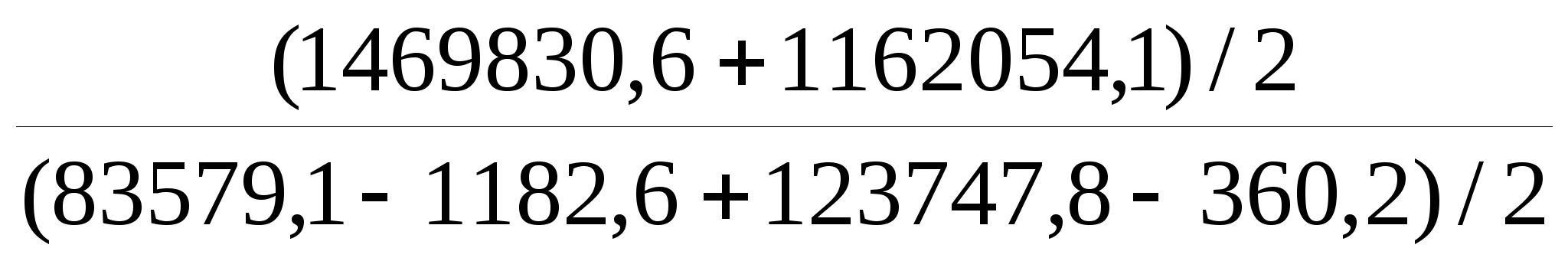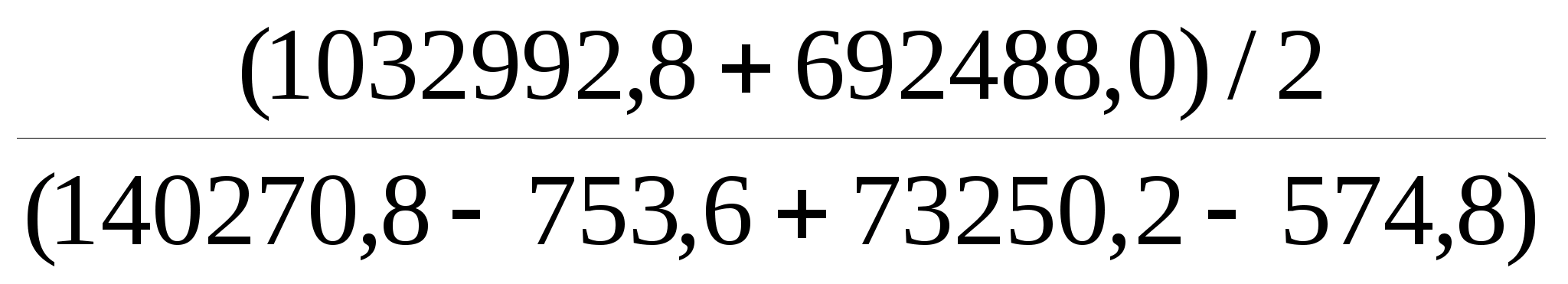 1 (ряд. 035 ф. 2 / (1/2 (гр. 3 ряд. 280 ф. 1 + гр. 4 ряд. 280 ф. 1))