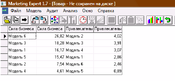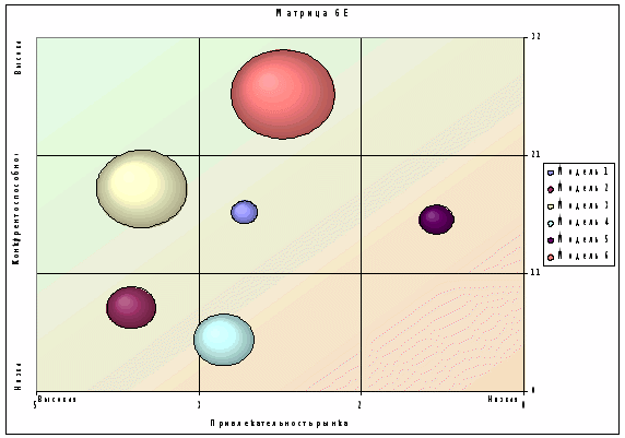 Для модели №6 характерна высшая степень привлекательности рынка. Стратегической задачей такого товара является осуществление необходимых инвестиций с целью извлечения максимальной выгоды из своих сильных сторон и улучшения слабых.