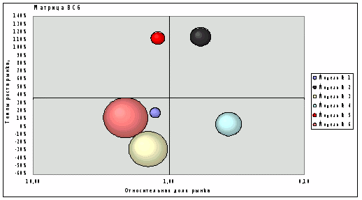 Матрица BCG дает возможность наглядного представления позиций фирмы на рынке, а также его стратегических проблемах. Главное достоинство метода, разработанного БКГ, - это основательная теоретическая проработка, приведшая к установлению жесткой связи между стратегическим позиционированием и финансовыми показателями.