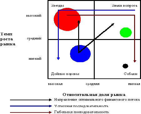 «траектория неудачи» - вследствие недостаточного инвестирования товар-«звезда» теряет позиции на рынке и переходит в группу товаров «знаки вопроса»;