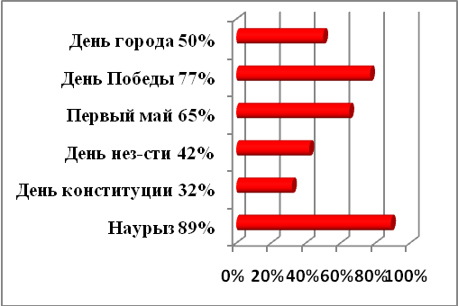 У любого народа и во все времена одним из самых любимых периодов календарного года, самым любимым развлечением и ритуальным занятием был и остается «праздник». Каждый народ, вместе с тем знает, что праздник – не только время отдыха и веселья, но это то, что в первую очередь связано с чем-то особенным, важным. Неслучайно с давних пор всякий народный, национальный праздник – «не только не рабочий день», но и день знаменательный, памятный, посвященный определенному событию в истории страны или города. Традиционные национальные праздники становятся популярными не только на своей родине, где возникли, но и далеко за её пределами. Организация и проведение массовых национальных праздников, в небольшой мере отличается от подготовки обычных массовых празднеств в масштабах города или региона. Поэтому у каждого праздника свое время, своя идея, свое «лицо». Его надо десятилетиями переживать и закреплять в соответствии с переживаниями предыдущих поколений в сознании поколений последующих6. Поэтому культивирование праздников – дело чрезвычайно серьезное, ибо необходимо для сохранения экологии культуры, преемственности поколений, сохранения исторического дневника народного быта и города.