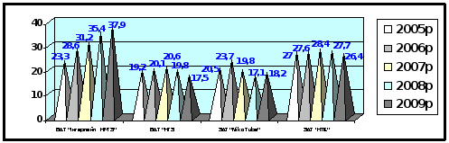 Рис.1.1 Виробництво трубної продукції заводами конкурентами у 2005-2009рр. (%)
