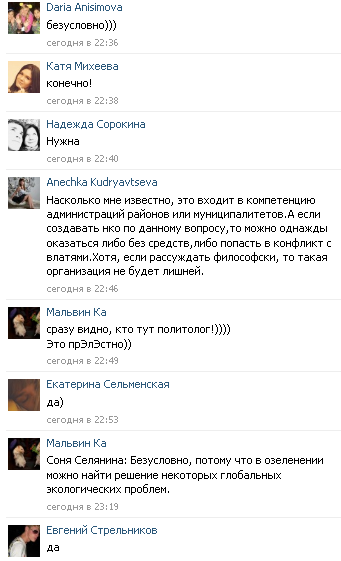 Девушки подошли более серьезно к вопросу озеленения города, активные обсуждения продолжились в личных переписках. Молодежь заинтересовалась в проекте и плане его реализации.