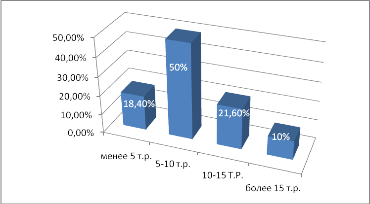 Цена является одним из основных критериев при выборе товара. Люди с наименьшим доходом обычно покупают что подешевле. Так как в нашем городе уровень доходов не высокий (рисунок 2.7), необходимо было узнать, как реагируют потребители на цены продукции ОАО "Молочная благодать".46,7% (28 чел.) опрошенных считают, что цены высокие; 53,3% (32 чел.) уверены, что цена соответствует качеству продукции (рисунок 2.8).