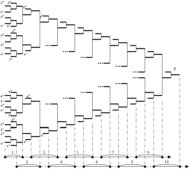 Теория внутренней структуры протона изложена в [6,8,10] где показано, что структура протона представляет собой фрактальную конструкцию. На рис.1 показан фрактал протона, который содержит десять иерархических уровней самоподобной внутренней структуры.