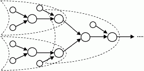 На рис.2 Рn - количество ветвей фрактала, адекватных зарядово-сопряженным вещественным образованиям. Фрактал протона имеет перекрывающиеся самоподобные структуры различного масштаба. Общая структура представляет собой переплетающийся узор, где завершающий фрагмент субструктуры низшего порядка является одновременно началом субструктуры более высокого порядка (рис.3). Невозможно отделить или изъять из общей структуры повторяющуюся самоподобную субструктуру, не разрушая при этом весь переплетающийся узор фрактала (рис.3). В этой особенности причина стабильности протона. Такая особенность фрактала протона имеет много общего с конфайнментом кварков в квантовой хромодинамике. По моему мнению, то, что в теории названо конфайнментом, обусловлено фрактальностью внутреннего строения протона. Протон имеет 10 самоподобных внутренних субструктур, повторяющих в масштабе первичную ячейку фрактала.