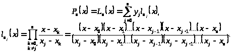 Многочлен Лагранжа, принимающий заданные значения в узловых точках имеет вид: