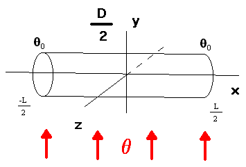 Тонкий цилиндрический стержень помещён в тепловой поток с постоянной температурой , на концах стержня поддерживается постоянная температура >0>.