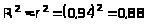 Значение коэффициента детерминации равное 0,88 свидетельствует о средней связи между Х и У, и о среднем общем качестве построенного уравнения регрессии