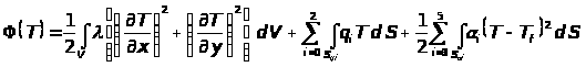 Решение уравнения (1) с граничными условиями (2) и (3) можно заменить задачей поиска минимума функционала
