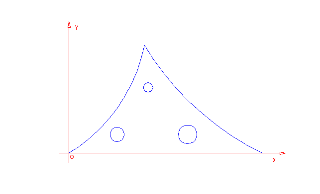 Рассчитать установившееся температурное поле в плоской пластине, имеющей форму криволинейного треугольника с тремя отверстиями (см. рисунок).