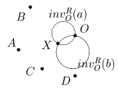 Последнее означает, что - серединный перпендикуляр к отрезку [AB]. Отсюда = inv>O>R() - окружность, диаметр которой лежит на прямой (AB).