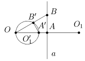 VIII. Окружность >1>(O>1>,r), проходящая через центр инверсии, отображается на некоторую прямую a. Более того, если A - конец диаметра, проходящего через O и O>1> (A O), то прямая a проходит через точку A = inv>O>R(A) и перпендикулярна прямой (OO>1>).