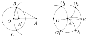 На рис. 2 построение образа выполнено только с помощью циркуля (в предположении, что OA > R/2). Для этого достаточно провести окружность