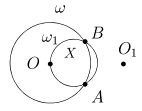 Из точки O проведем произвольную окружность (O,R) так, чтобы она пересекала исходную окружность >1>. Обозначим точки пересечения >1> через A и B. Куда перейдет прямая (AB) при инверсии inv>O>R? Конечно же в >1>, поскольку точки A и B остаются неподвижными (свойства II и VI). По свойству VII центр inv>O>R((AB)) (т.е. центр >1>) является образом точки S>(AB)>(O) при inv>O>R. Из этих рассуждений следует цепочка необходимых построений. Сначала находим точку O>1> = S>(AB)>(O), симметричную O относительно прямой (AB) (школьная задача). А затем строим образ точки O>1> при inv>O>R, он и будет искомым центром. Все указанные построения выполняются только с помощью циркуля.