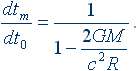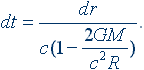 Если принять, что интервал изотропный, т.е. dS2=0, и рассмотреть его в радиальном направлении, т.е. опустить члены, содержащие θ и φ и решить его относительно dt, то получим:
