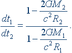 Формулу (5) можно представить в виде соотношения скорости хода часов в окрестностях двух гравитационных масс М>1 >и М>2>, т.е. если сравнивать напряжённость хронополя двух гравитационных масс, то: