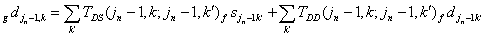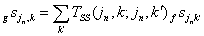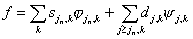 Как g, так и f могут быть представлены в виде вейвлет-рядов с вейвлет-коэффициентами (>f >s>j,k>;>f >d>j,k>) и (>g >s>j,k>;>g >d>j,k>). На наиболее детальном уровне разрешения j>n> отличны от нуля только s-коэффициенты, и преобразование имеет вид