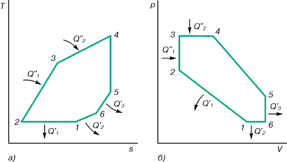 Термический КПД цикла по pV-диаграмме рис.2б: