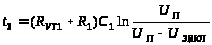 При подключении напряжения UBX на транзистор VT1 конденсатор С1 начинает заряжаться через транзистор и резистор R1 до напряжения U(t1),определяемого величиной напряжения включения ОПТ.