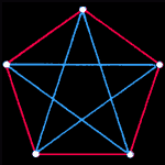 Эрдёш всё же нашёл способ получить некоторое представление о том, насколько большим должно быть число Рамсея. Что если он сможет найти красно-синюю раскраску большой полной сети, не содержащую ни красной, ни синей сети из трёх точек? Такая раскраска полной сети из пяти точек показана на рис.2. Отсюда следует, что число Рамсея для трёх красных и трёх синих должно быть больше пяти. Пять есть нижняя граница для этого числа Рамсея.