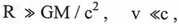 где М - масса системы, R - радиус системы, v - скорость внутри системы, 2GM /с2 - радиус Шварцшильда, с - скорость света. К тому же, как отмечается в [5], из предложения о малой скорости вытекает условие, что само гравитационное поле должно быть слабым. В связи с этим, планета Земля и ее естественный спутник создают вокруг себя искривление пространства-времени, но кривизна метрики будет небольшой.
