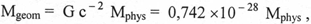 Прежде чем, перейти к вопросам расчетного характера, необходимо сказать следующее: т.к. в геометродинамике все величины переводятся в геометризованные единицы, следовательно и здесь необходимо предварительно скорректировать физические параметры Луны и Земли. Для того, чтобы привести физическую массу выше указанных объектов к геометризованной воспользуемся выражением вида [4]