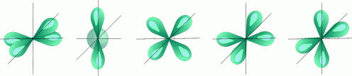 Для d- орбитали (l = 2) - пять равноценных ориентаций в пространстве (2l + 1 = 5): m = -2, -1, 0, +1, +2.