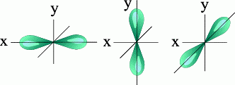 Для p- орбитали (l = 1) - три равноценные ориентации в пространстве (2l + 1 = 3): m = -1, 0, +1.