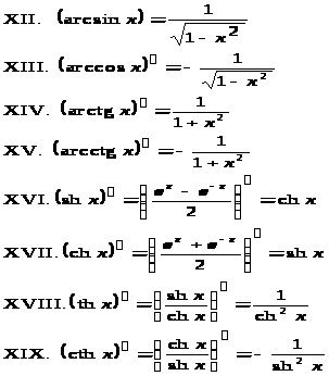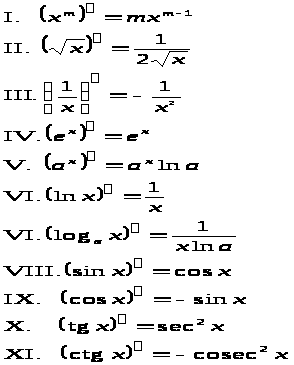 Основные правила дифференцирования
