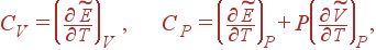 Второй член в формуле для cPсвязан со слагаемым PdV, т.е. описывает эффеккт, оказываемый на теплоемкость работой, которую система совершает во время расширения. В (9) подобного члена нет, поскольку объем остается постоянным и работа не совершается. (1)