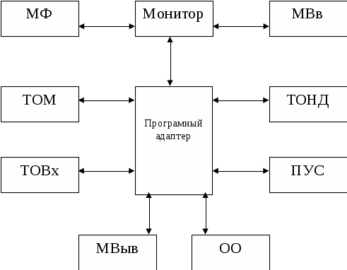 Таким образом, адаптер выполняет всю совокупность операций по организации информационного взаимодействия между программными модулями. В случае разноязыковых модулей адаптер практически берет на себя выполнение соответствующих функций операционной системы. Достаточно сложной является также задача построения области обмена, поскольку ее решение связано со структурированием всех переменных, участвующих в информационном обмене. В крупных САПР, программные модули которых оперируют с большим числом входных, промежуточных и результирующих переменных, функции адаптера по организации и взаимодействию с обменными областями целесообразно переложить на типовые СУБД.