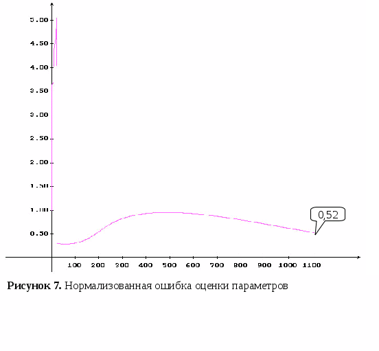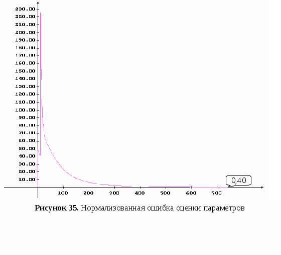 Установлено, что в общем случае скорость сходимости с ростом размерности вектора параметров и количества наблюдений сильно падает, однако с увеличением количества входных данных растет точность оценок параметров. Но существует некоторый предел, при котором рост точности приостанавливается (при количестве наблюдений более 2500). Поэтому следует искать компромисс между скоростью и точностью.