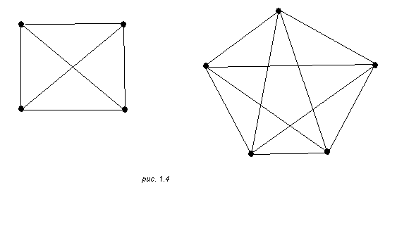 ребрами которого являются всевозможные пары (1.2) для двух различных вершин a и b из V. На рис. 1.4 даны схемы полных графов для множеств вершин из четырех и из пяти элементов.