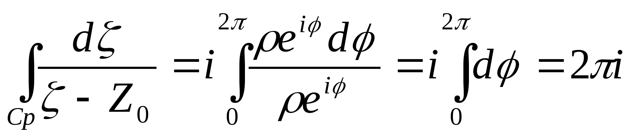 7.) Пусть Cp – окружность радиуса , с центром в точке Z>0>. Обход вокруг контура Cp осуществляется против часовой стрелки. Cp : = Z>0> + ei, 0 2, d = iei d .