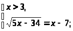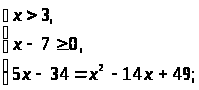 Учитывая ноль подкоренного выражения, данное уравнение равносильно двум системам: