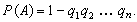 Р (A) = 1 — q>1>q>2> ... q>n>.(*)