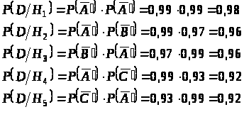 №39. По линии связи могут быть переданы символы А, В, С. Вероятность передачи символа А равна 0,5; символа В – 0,3; символа С – 0,2. Вероятности искажения при передаче символов А, В, С равны соответственно 0,01; 0,03; 0,07. Установлено, что сигнал из двух символов принят без искажения. Чему равна вероятность, что передавался сигнал АВ?