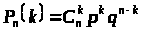 число сочетаний из п элементов по k, q=1-p. В рассматриваемом случае:
