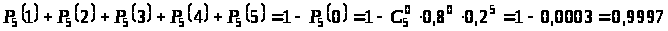г) вероятность появления события хотя бы один раз в 5 испытаниях: