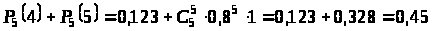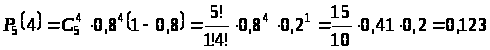 б) вероятность появления события не менее 4 раз в 5 испытаниях: