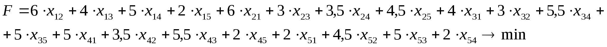 Суммарная протяженность маршрута F, которую необходимо минимизировать, запишется в следующем виде: