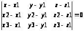 В силу компланарности в-ров М1М=r-r1, M1M2=r2-r1, M1M3=r3-r1 их смешанное произведение = 0, т. е. радиус в-р т. М удовлетворяет условию: