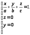 и положив a= - D/A, b = -D/B, c = -D/C, получим уравнение плоскости в отрезках: