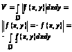 Ф-ция f(x,y) интегрируема на замкнутой области D, ограничена на D.