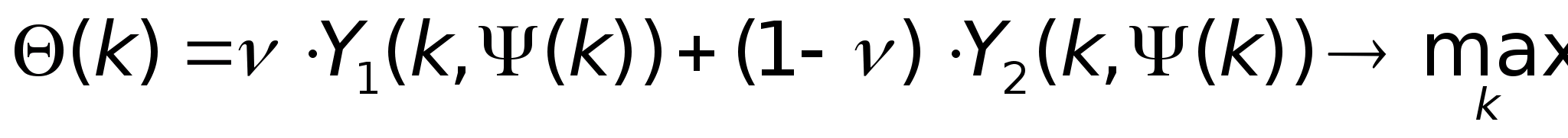 Вернемся к задаче (31). Напомню, что она характеризует действия дирекции, направленные не просто на увеличение прибыли своего хозяйства, но и на увеличении прибыли частных хозяйств. В данном случае вместо в функции Y>1> и Y>2> нужно подставить =(k). Задача примет следующий вид: