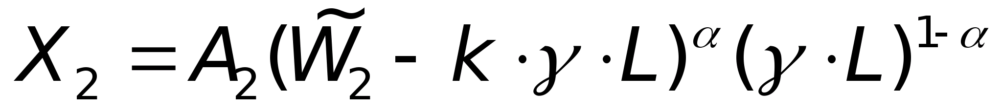 Рассмотрим производственную функцию предприятий коллективных хозяйств (F>2>). На производственное потребление расходуется > >, а труд, затраченный на производство выразится формулой – > >. Тогда производственная функция примет вид: