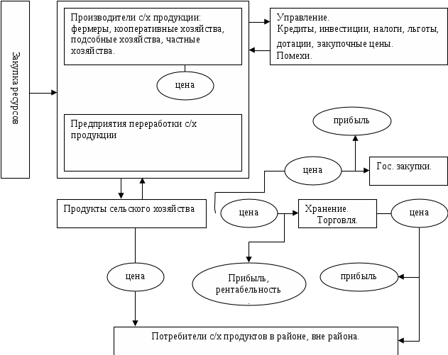 Структура агропромышленного комплекса представлена на рис. 1.1. Она довольно сложна. В данной работе рассматривается только подсистемаи производителей сельхозпродукции.