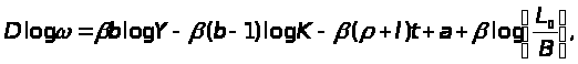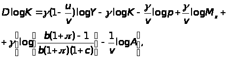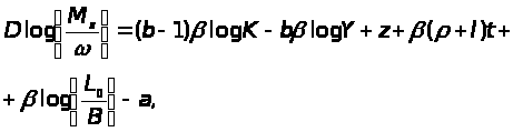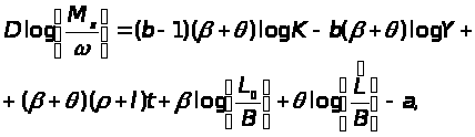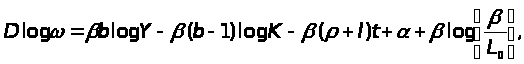 Рівняння (1.6) визначає зміну цін на ринку праці. Воно базується на припушенні, що геометричний темп росту ставки заробітної плати є зростаюча функція частки використовуємої у виробництві робочої сили. В основі цього припушення є гіпотеза про те, що, якщо частка використовуємої у виробництві робочої сили перевищує деякій рівень, конкуренція на ринку праці викликає підвищення ставки заробітної плати, а якщо частка використовуємої у виробництві робочої сили менше цього рівня, конкуренція викликає зниження ставки заробітної плати. Проведене Філліпсом дослідження даних для Англії за період 1862 – 1957 рр. показує, що на протязі цього періода заробітна плата мала тенденцію до підвищення або зниження в залежності від того, перевищувала частка використовуємої у виробництві робочої сили величину 0,95 чи була менше неї.